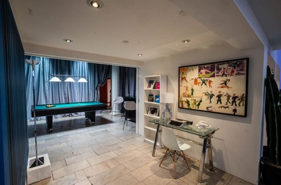 The Office in the SoHo Loft with the Billiard Room in the background. The Office was located in the entrance to the Gallery.