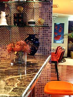The Bar in the Palms Suite is located next to the Kitchen and across from the Phone Lounge and Lounge. The Palms Suite was the first Real World House to have a Bar. In this picture, you can see the Spa at the end of the Hallway.