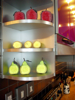 The Kitchen in the Palms Suite is located next to the Bar and across from the Billiard Room and Office. The Kitchen is so small that there was not enough counter space to include a sink.