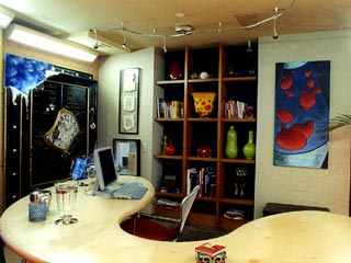 The Office in the Palms Suite on 6/28/2007. In this picture, you can see that there are different decorations in the shelves and that the studio lighting has been removed. All of the artwork that hung in the Office during the filming of the series has been removed with the exception of the lava lamp painting. Photo Credit: www.RealWorldHouses.com