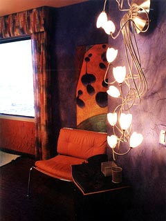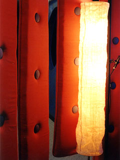 The Phone Lounge is separated from the Lounge by these red patricians that hang from the ceiling.