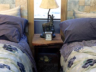 The Southwestern Bedroom in the Palms Suite has two beds and is located between the Siegfried & Roy Bedroom and Spa.